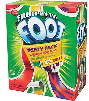 Fruit by the Foot™ Variety Pack - BettyCrocker.com Fruit by the Foot Variety Pack features Berry Tie-Dye, Blue Raspberry, and Strawbeery Tie-Dye flavors. With wild flavors and colors, the possibilities for fun are endless. These individually wrapped snack bags are the perfect treat to include in a packed school lunch box. These tasty gummy treats are made without gluten, gelatin, or artificial flavors. This variety pack contains vitamin C for ...
