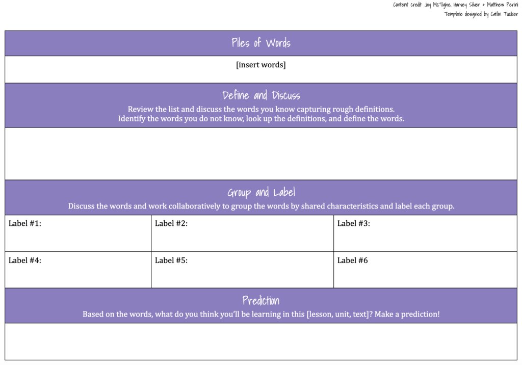 List-Group-Label | Classroom Strategies | Reading Rockets List-group-label is a form of semantic mapping. The strategy encourages students to improve their vocabulary and categorization skills and learn to organize concepts. Categorizing listed words, through grouping and labeling, helps students organize new concepts in relation to previously learned concepts. More vocabulary strategies