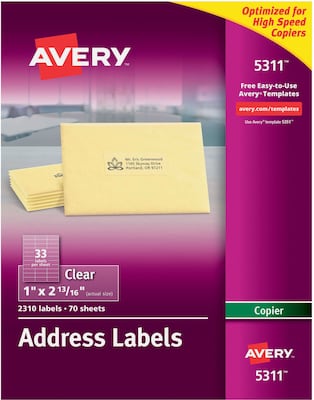 Avery Copier Address & Shipping Laser Label, 1" x 2 13/16", Clear, 33 Labels/Sheet, 70 Sheets/Pack (5311)