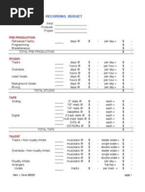 Recording Budget Sheet | Sound Production Technology - Scribd Recording Budget Sheet - Free download as PDF File (.pdf), Text File (.txt) or read online for free. 20 Free Printable Budget Templates: Manage Your Money In 2022 How To Choose The Right Budget Template How Do You Use A Budget Template 1. Free Printable Budget Templates from Savvy Budget Boss 2. Printable Budget Sheet from Printable Crush 3. Simple Budget Template For College Students from College Life Made Easy 4. Simple Monthly Budget Worksheet from Gathering Dreams 5.