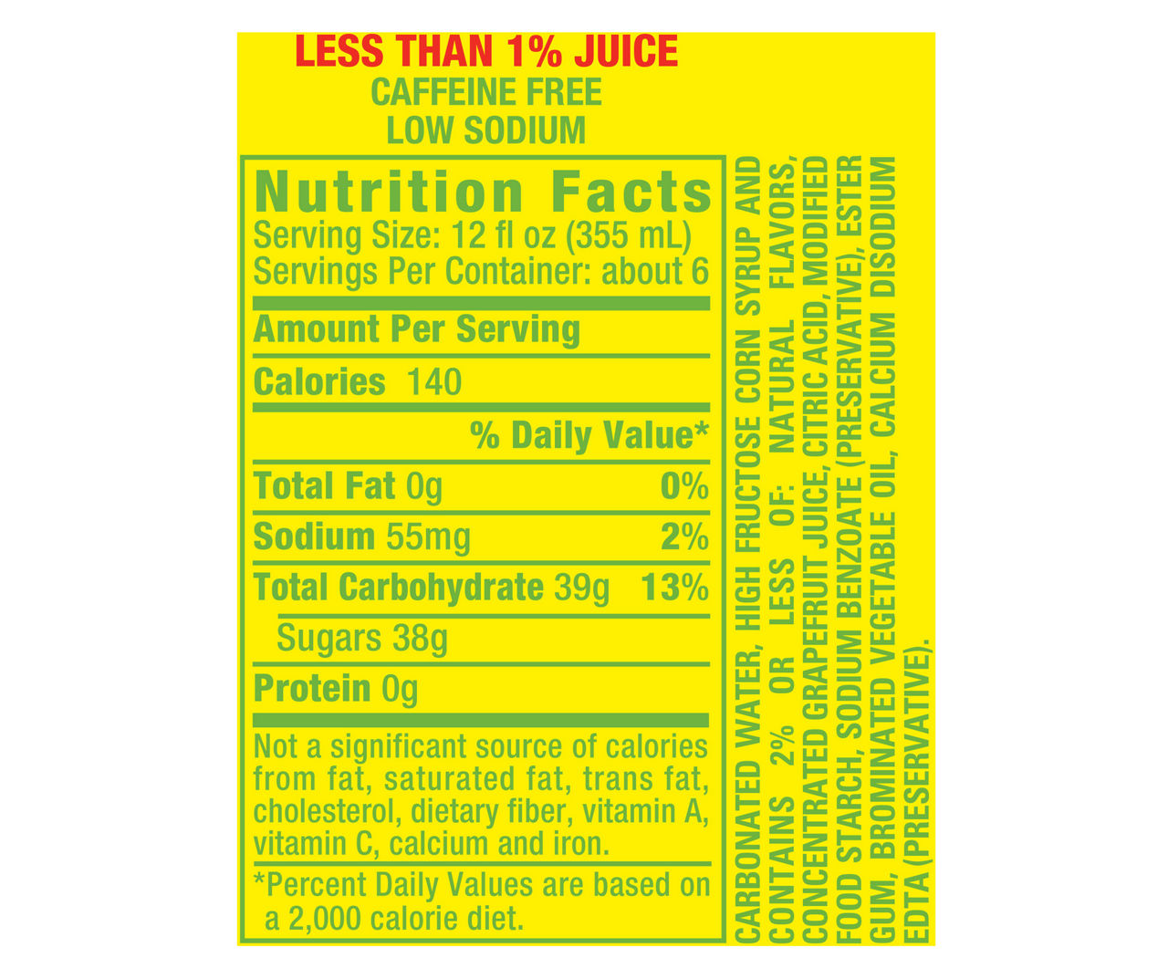 38 squirt soda nutrition label