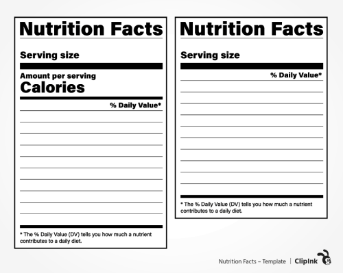 Nutrition facts svg, Blank template | svg, png, eps, dxf, pdf - ClipInk Blank nutrition facts label for customizing. Empty table, daily value and calories. Digital files - silhouettes, cliparts. High quality vector graphics, scalable to any size without losing quality. Package includes 2 .svg files - for Cricut, Silhouette Studio Cameo and others cutting machines,