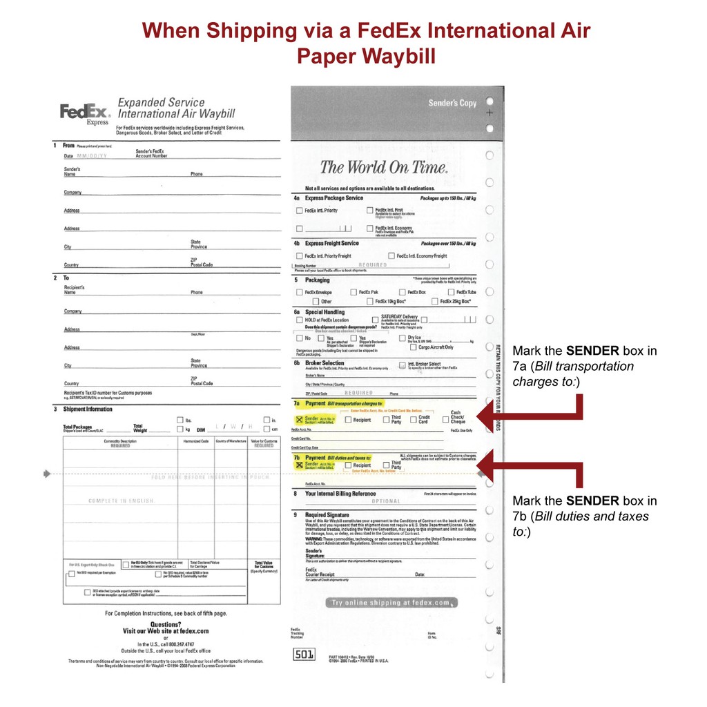 Fedex Expanded Service International Air Waybill Blank Form Pdf - Fill ... Finally sign the Air Waybill remove the sender s copy and place the remaining copies with your shipment. When completing a FedEx Expanded Service International Air Waybill please type or print clearly pressing hard with a ball-point pen and complete in English. 1. Sender Information Add your address details phone and FedEx account number. 2. FedEx® Supplies - Order Packaging Supplies With the speed and convenience of the web and a few simple clicks, you can choose from a range of easy-to-use FedEx Express ® airbills, pouches, packaging and labels to fit your business needs. And our shipping and packaging supplies are typically delivered in 2 to 5 business days. Best of all, it's free.