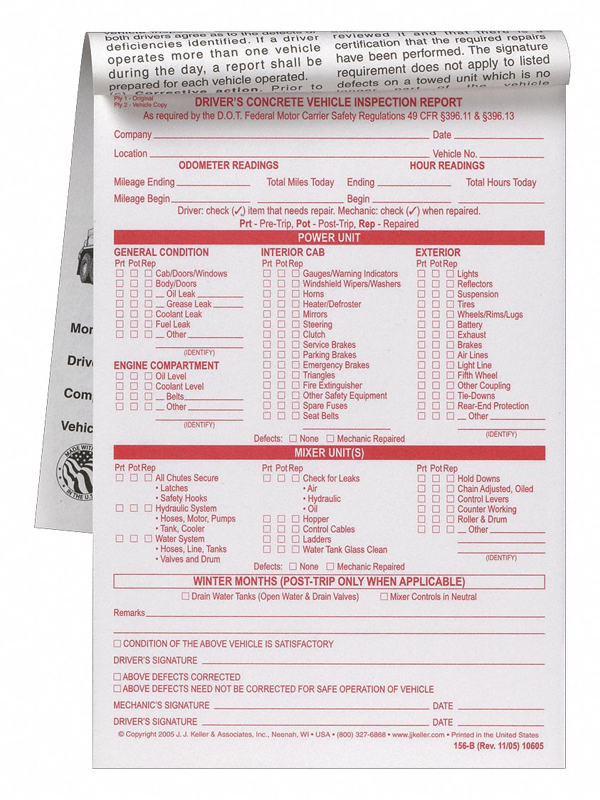 Amazon.com: Detailed Driver's Vehicle Inspection Report - Book … GotSafety – 3-Ply Carbonless Annual Vehicle Inspection Report Form with Red Exterior Aluminum Inspection Label (6"x3.5"), and White Interior Inspection Label (5"x4") – Small Pack of 10 Detailed Driver's Vehicle Inspection Report 50-pk. - Book Format, 2-Ply with Carbon, 5.5" x 8.5" - 31 Sets of Forms Per DVIR Book - Meet FMCSR Requirements - J. J. Keller & Associates