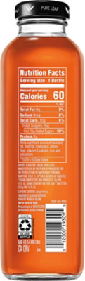 Lower Sugar | Subtly Sweet Peach Iced Tea | Pure Leaf Our Lower Sugar Iced Teas are expertly brewed using quality ingredients, only 20 calories & 5g of sugar; 85% less sugar than our Sweet Tea, so every sip is subtly sweet and simply refreshing. No wonder every bottle of Pure Leaf tastes so good. Available In: 18.5 FL OZ 16.9 FL OZ (6-pack) Nutrition Facts
