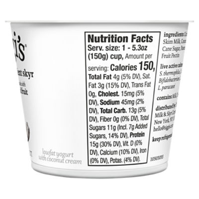 Siggi's yogurt nutrition label. siggi's Icelandic yogurt - Home Our products are based on Scandinavian dairy traditions, such as skyr, the traditional Icelandic yogurt. Our products don't contain any of those dreadful artificial sweeteners. We only use milk from family farms who do not use growth hormones like rBST. see our products. 4x the milk to make one cup of siggi's. One serving of siggi's yogurt uses 4x the amount of milk as a regular cup of yogurt, making a thick, protein-rich yogurt. The Best Yogurt Brands (& The Worst) For Your Health - Eat This Not That It's lightly sweetened, but we wish there was a little less fat and calories and a little more protein. 10 Oatly Yogurt Alternative, Non-Dairy, Full-Fat, Mixed Berry 5.3 oz serving: 170 calories, 7 g fat (.5 g saturated fat), 10 mg sodium, 24 g carbs (1 g fiber, 12 g sugar), 3 g protein, Calcium 10% This is a great dairy-free yogurt alternative. siggi's Icelandic yogurt - Coconut Low-Fat Nutrition Facts - Details Serving Size 1 container (150g) Servings Per Container 1 Calories 160 Total Fat 4.5g 6% Saturated Fat 3.5g 18% Trans Fat 0g Cholesterol 15mg 5% Sodium 60mg 3% Total Carbohydrate 14g 5% Dietary Fiber 0g 0% Total Sugars 11g Includes 8g Added Sugars 16% Protein 15g 30% Vitamin D 0mcg 0% Calcium 130mg 10% Iron 0mg 0% siggi's Icelandic yogurt - Products lowfat yogurt whole milk yogurt skyr: a wholesome tradition thick, creamy, and rich in protein, skyr is the traditional yogurt of Iceland. siggi's skyr is made with simple ingredients and not a lot of sugar. available in rich & creamy, keto, lower-sugar, nonfat yogurt, lowfat yogurt, and whole milk yogurt