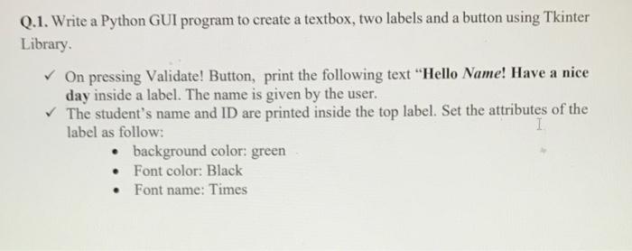 Comment changer le texte d'un label Tkinter Python - WayToLearnX Jul 6, 2020 ... label = tk.Label(gui, text="Hello World!"). How to change Label Properties (Color, Text, Font size) - YouTube Nov 9, 2022 ... Python Tkinter: How to change Label Properties (Color, Text, Font size). 787 views 3 months ago. CodersLegacy. How to change the size of text on a label in Tkinter - Tutorialspoint Aug 6, 2021 ... If you want to change the size of the text in a Label widget, then you can configure the font=('font-family font-size style') property in the ...