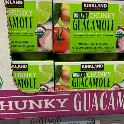 Calories in Kirkland Signature Organic Chunky Guacamole and ... - FatSecret Carbs 6g Protein 1g There are 90 calories in 1 container (70 g) of Kirkland Signature Organic Chunky Guacamole. Calorie breakdown: 69% fat, 26% carbs, 4% protein. Related Guacamole from Kirkland Signature: Chunky Guacamole More Products from Kirkland Signature: Trail Mix (30g) Peanuts Boneless and Skinless Chicken Breast